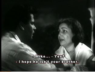 He is in love with Rita (Shakila), and she loves him too, though she does get quite irritated with him. Her father Rai Bahadur Digambar Prasad Rai (S Bannerjee) is also irritated with Shekhar, and so-o-oo NOT in love with him. Rita sneaks out to meet Shekhar, much to her father's chagrin. Infuriated by Shekhar mandrao-ing around his daughter, Rai Bahadur carts her off to Calcutta, promising to marry her off to a Mr Choudhary immediately they get there. Shekhar, who has sneaked into the house in the meantime, overhears this and is bent on having it out with his father-in-law-to-be. He may be a sissy and a 'cartoon' but he is persistent.